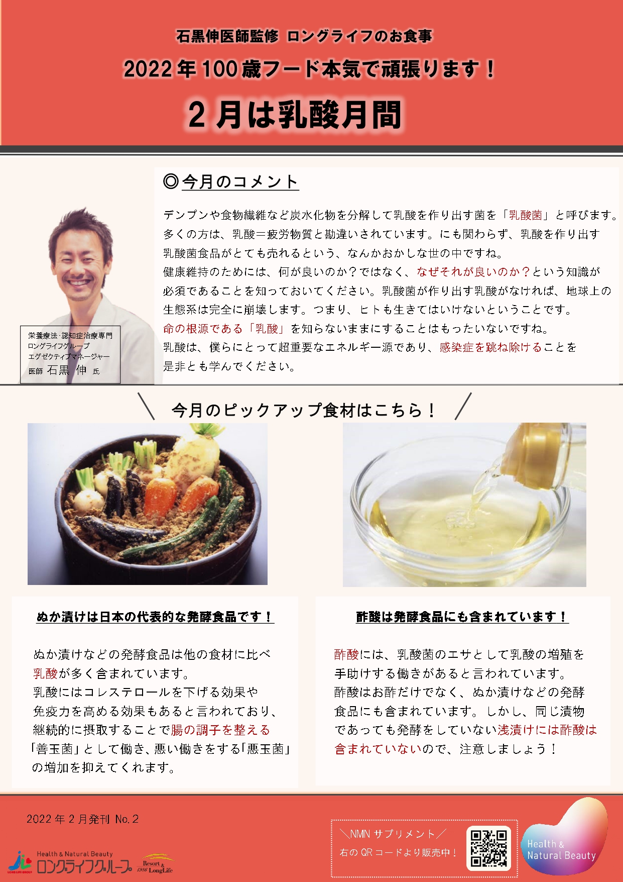 ロングライフグループのコンセプト「ヘルス&ナチュラルビューティ※」フードプログラム2月の石黒伸先生ドクターズメニューをご紹介致します。